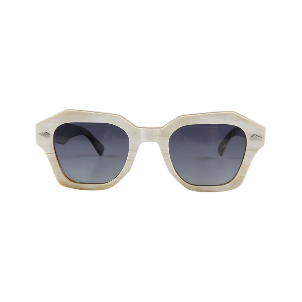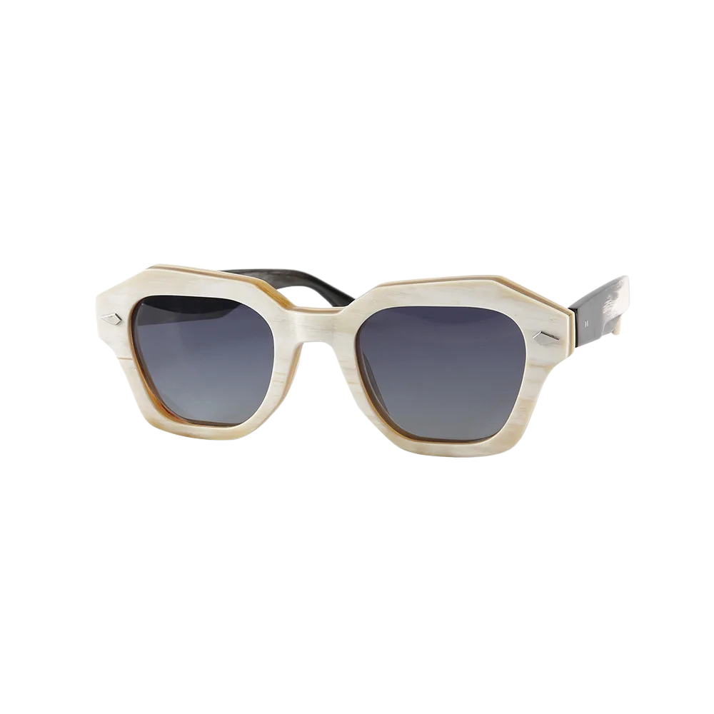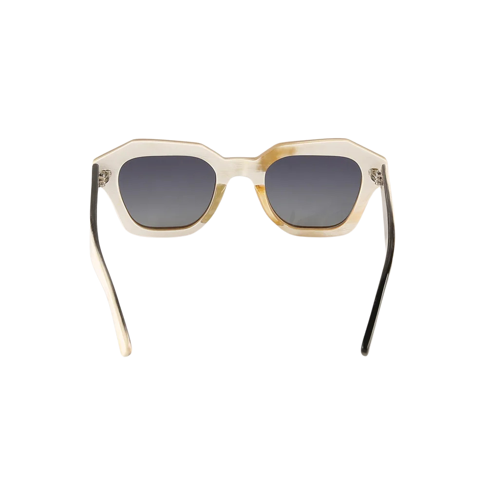 Arkan Buffalo Horn Frame is our most architectural silhouette, cut and polished entirely by hand from sustainably sourced Asian water-buffalo horn. No two blanks share the same grain or hue, so the frame you receive will display a unique marbling of soft ivory, caramel and charcoal.