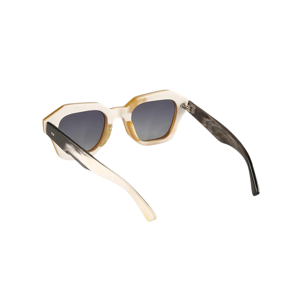 Hand-cut from genuine, ethically sourced horn, Arkan – Handcrafted Buffalo Horn Frame fuses bold angular geometry with the natural warmth of horn. Lightweight, hypoallergenic, and endlessly unique, Arkan is precision-finished with stainless-steel spring hinges and ready for prescription or sun lenses.