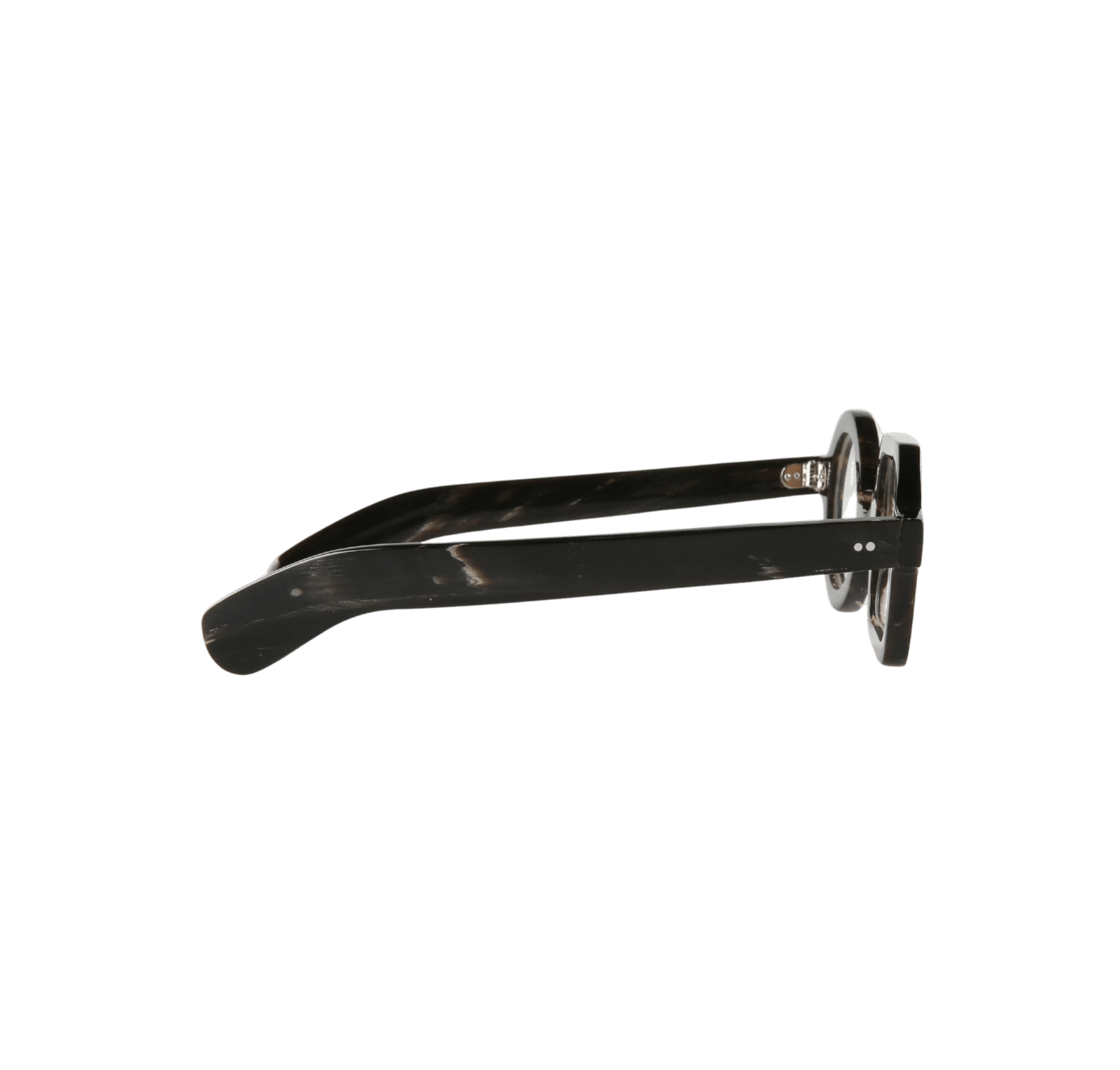 Horn is light, hypoallergenic and tough. A recent peer-reviewed study shows water-buffalo horn outperforms acetate in both tensile strength and skin compatibility.¹ With proper care, it will mature gracefully instead of cracking or fading.