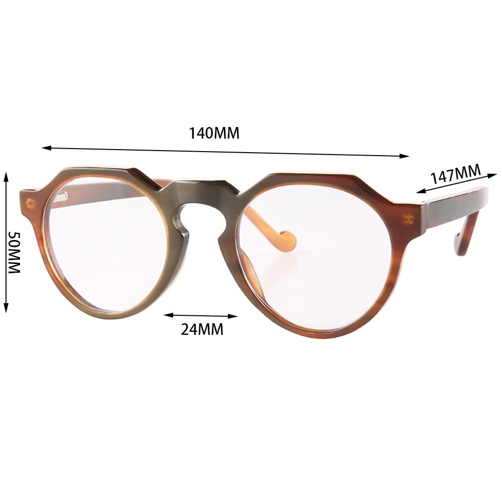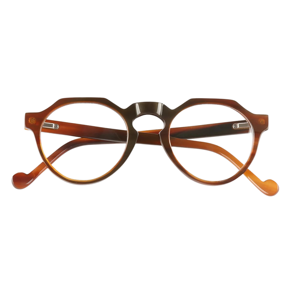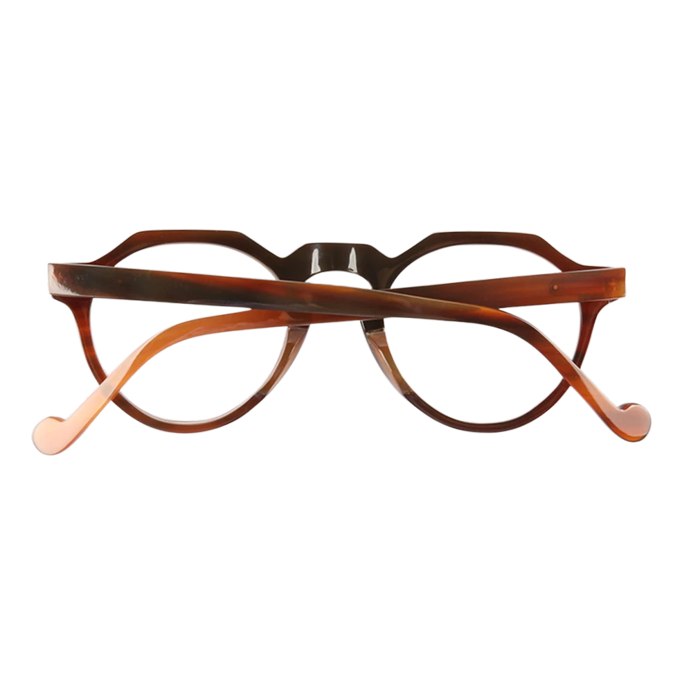 Our atelier can polish Elva in a spectrum of horn tones—from honey blondes to espresso charcoals—and fit clear prescription optics, gradient sun lenses, or photochromic lenses. Stainless-steel nose-pad mounts and spring hinges add strength, while leather-sheathed temple tips ensure day-long ease.