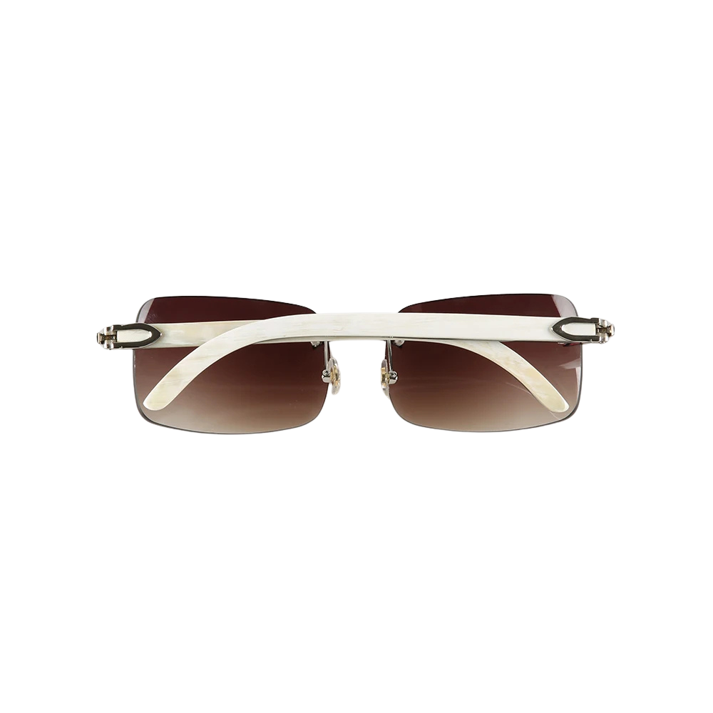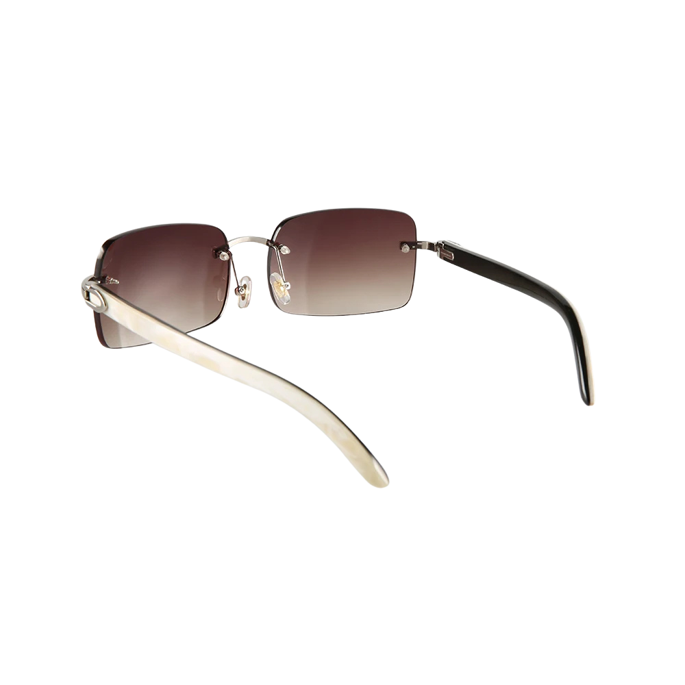 Sienna is a rim-less, stainless-steel sunglass finished with double-layered buffalo-horn temples—cream outside, smoke inside. Lightweight, hypo-allergenic horn warms to the skin and gains a beautiful patina over time.