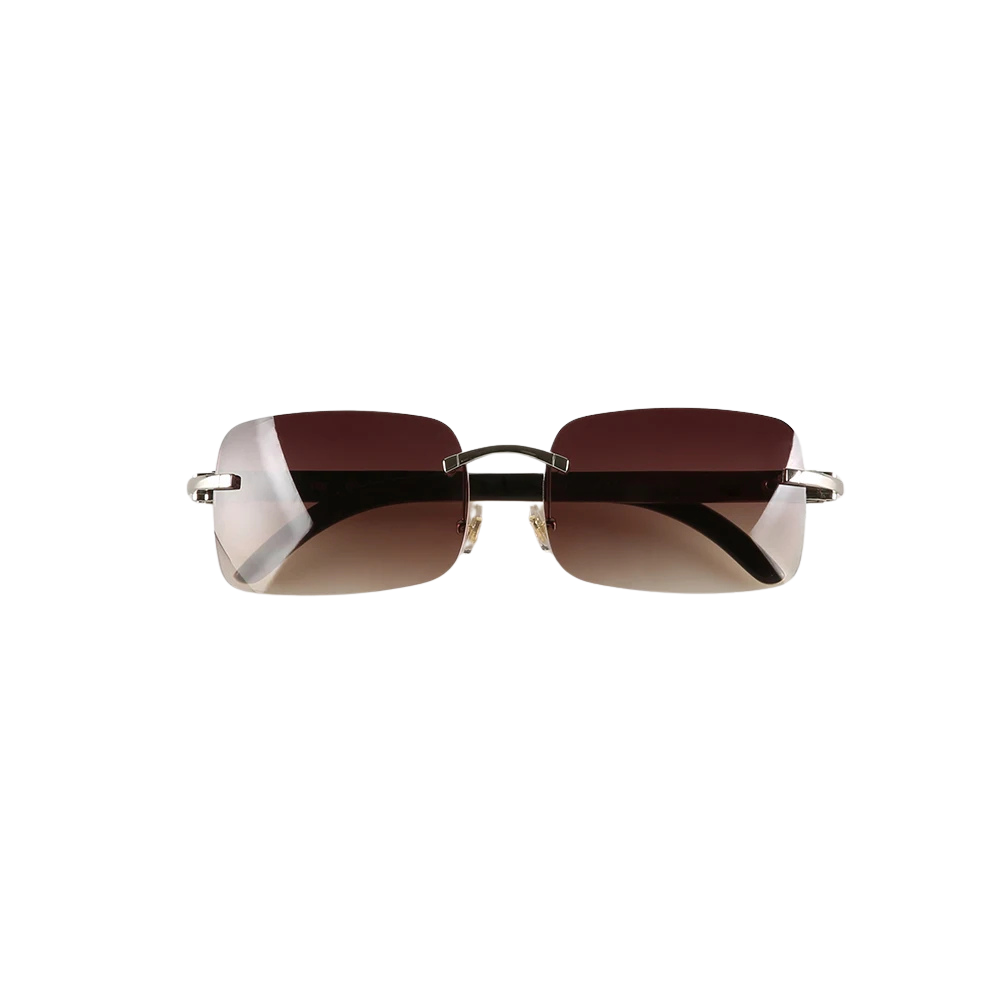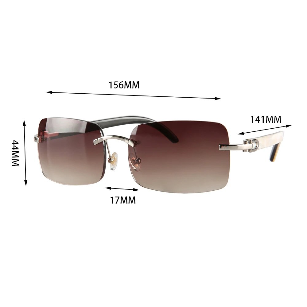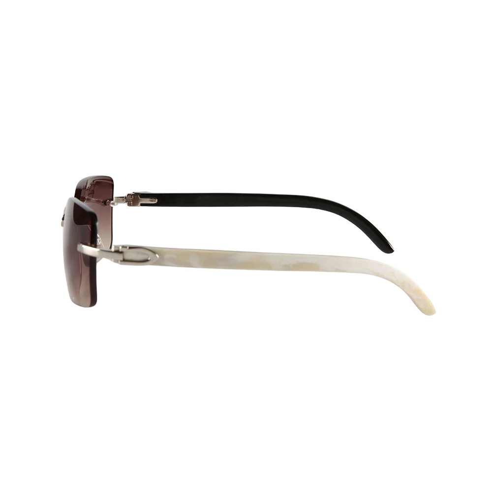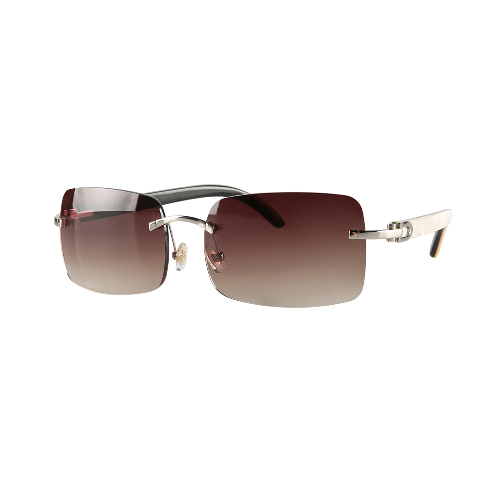 Sienna – Handcrafted Buffalo Horn Frame is a rim-less, lightweight sunglass that pairs polished stainless steel with double-layered buffalo-horn temples. Master artisans laminate two contrasting horn sheets—ivory-cream on the outside, charcoal-smoke on the inside(every customer can chose the tones he wants)—to achieve a subtle two-tone effect that shifts as you turn your head. Because every horn strip has its own grain and hue, no two Sienna frames will ever look the same.