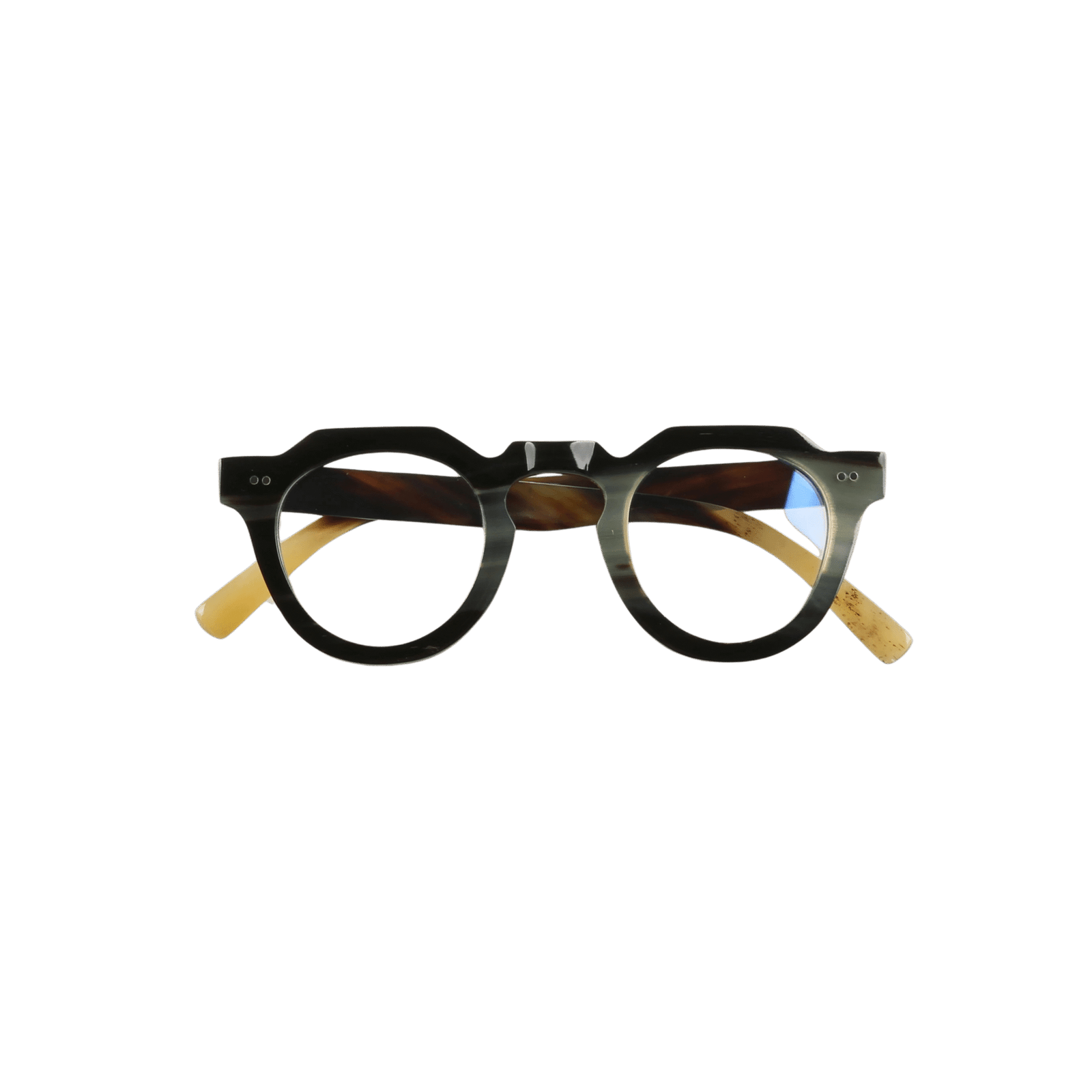 A bold, architectural silhouette cut from ethically-sourced buffalo horn. The Architect M balances sculpted bevels with lightweight comfort and can be glazed with clear optics, sun, or photochromic lenses to suit your everyday vision.