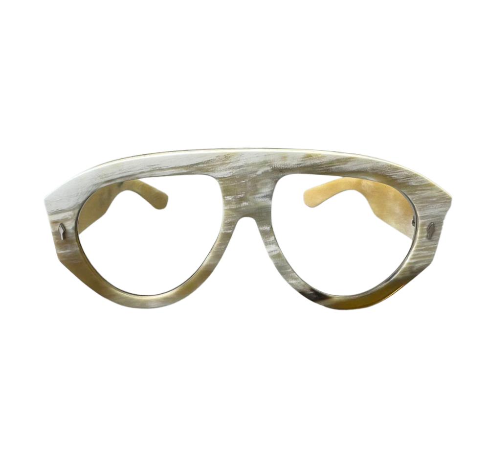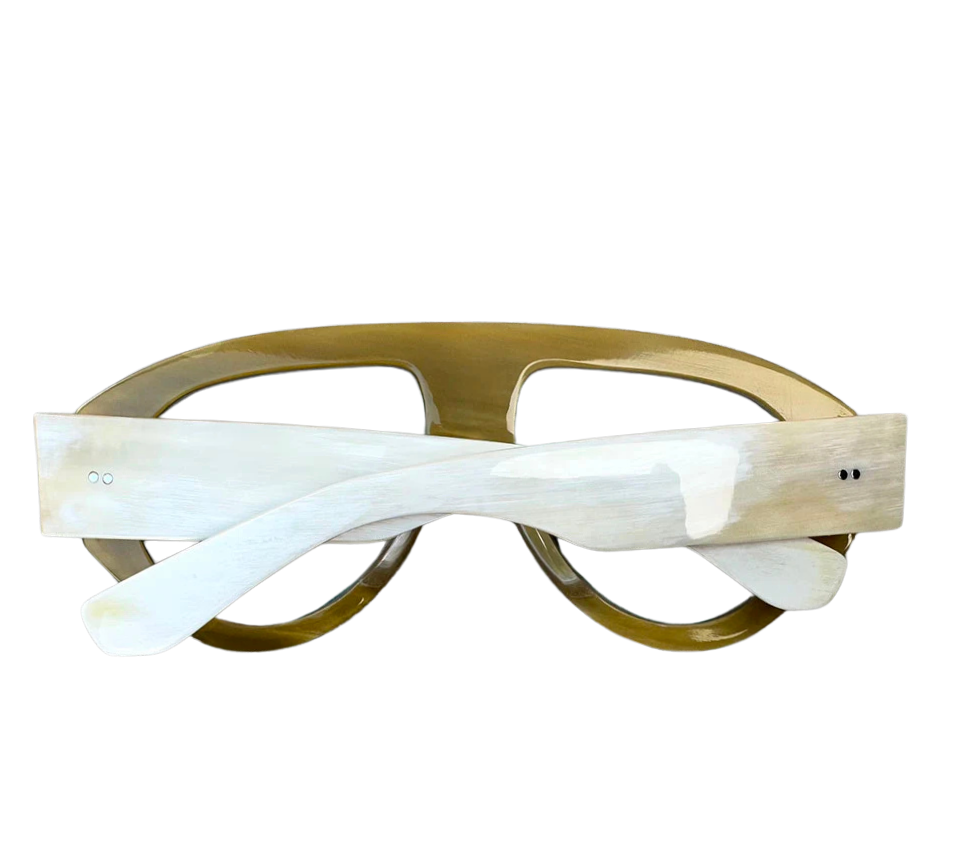 Volt is an oversized aviator eyeglass frame handcrafted from 100% natural buffalo horn. Lightweight, hypoallergenic, and entirely unique—each frame boasts its own character with custom horn tones. Available in a range of natural shades and measurements for a timeless luxury look.
